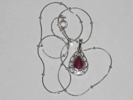 | Серебряная (925 проба) подвеска (22см) с натуральным рубином. |