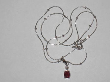 | Серебряная (925 проба) подвеска (22см) с натуральным рубином. |
